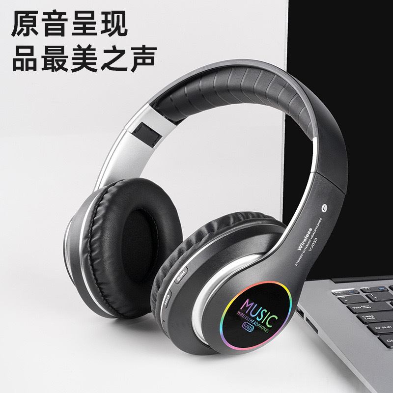 VJ033 Earphone Olahraga Tipe Headset Bercahaya Warna LED Earphone Bluetooth Nirkabel Permainan Bass Berat Bercahaya