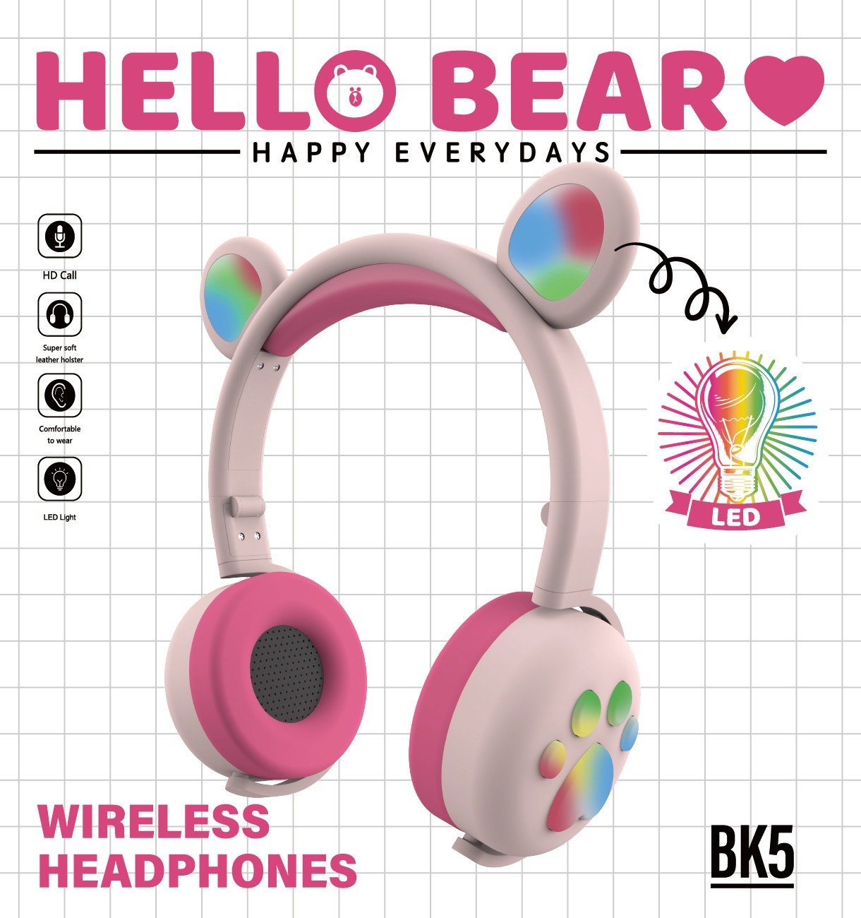 Headset Bluetooth nirkabel, headset Bluetooth nirkabel Seri Beruang permainan bercahaya, headset Komputer, headset Bluetooth macaron