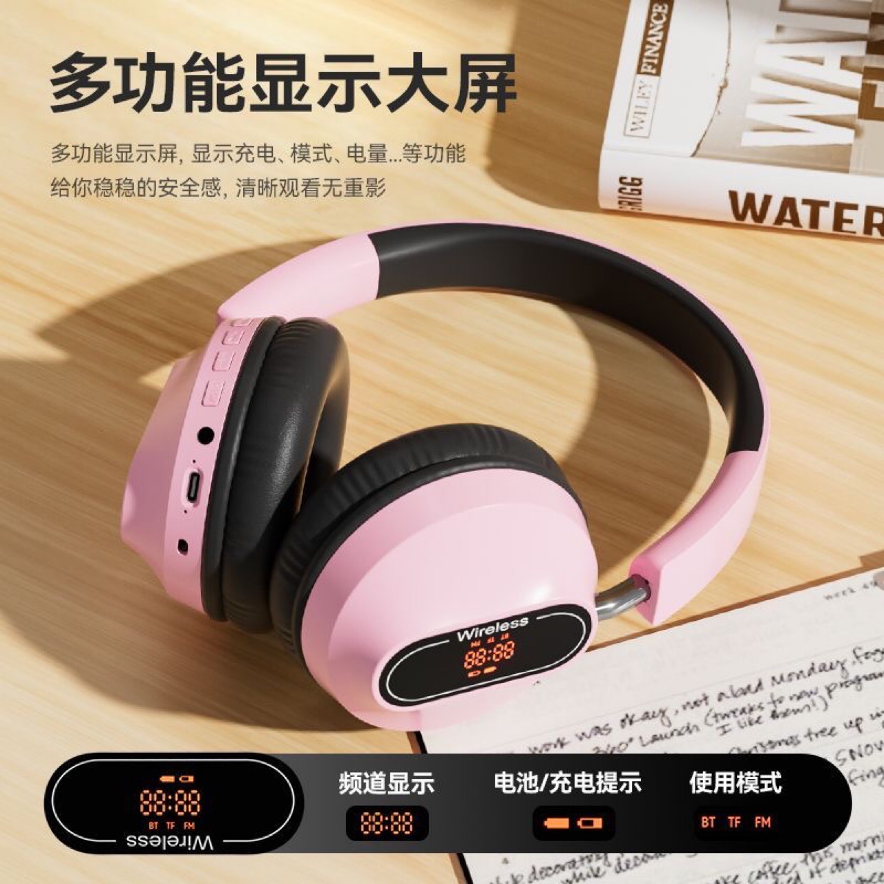 Headset Bluetooth nirkabel, headset komputer tampilan daya radio pencarian otomatis pembelajaran pelajar