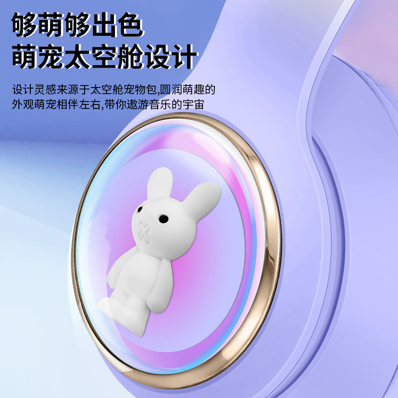 AKZ-53 Earphone Bluetooth Model Kepala Kartun Lucu Bercahaya Kapsul Hewan Peliharaan Lipat TF Earphone Nirkabel