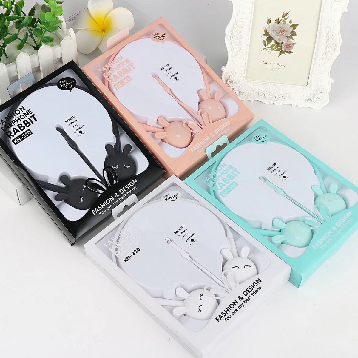 Yinbaoli headset KN-320, headset komputer ponsel dengan kontrol kabel mikrofon kartun kelinci lucu