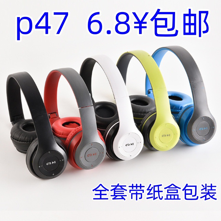 Headset Bluetooth factory P47, headset Bluetooth nirkabel ponsel lintas batas hadiah Bass