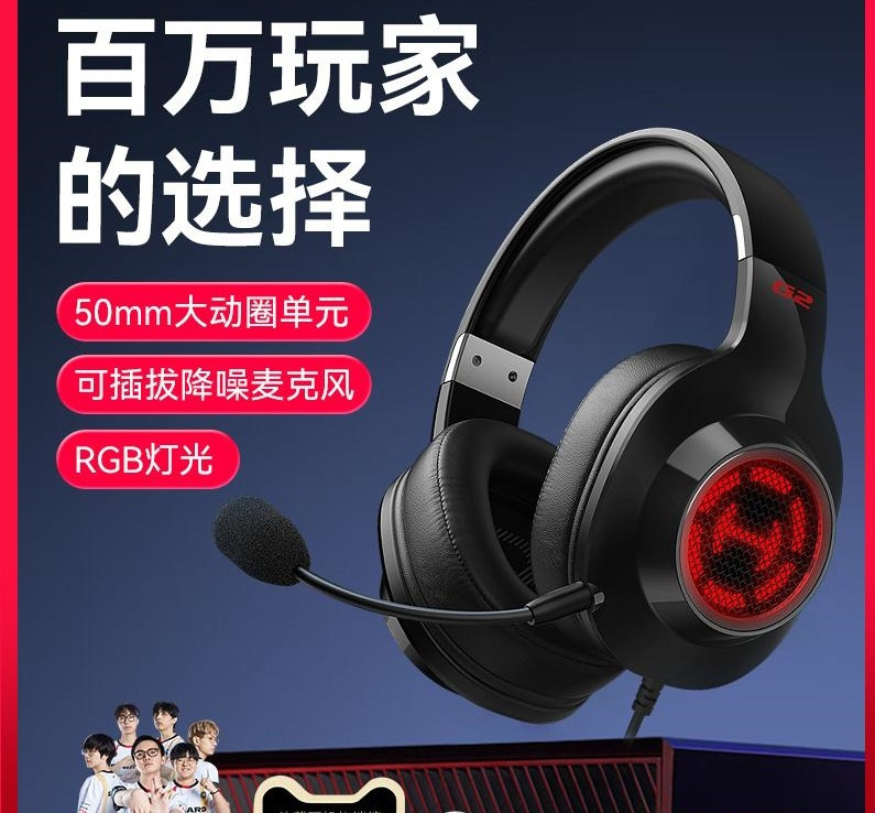 Headset Komputer e-sport, headset gaming berkabel notebook desktop dengan mikrofon, headset bercahaya saluran 7.1