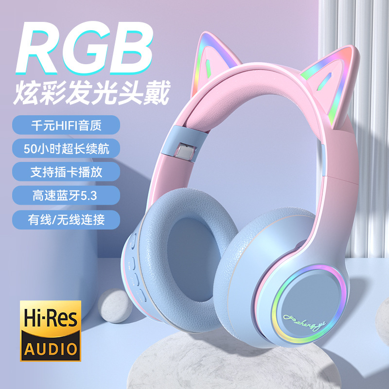 Headset Bluetooth LED, headset model pribadi lintas batas telinga penuh pernapasan subwoofer lampu ponsel pabrik grosir