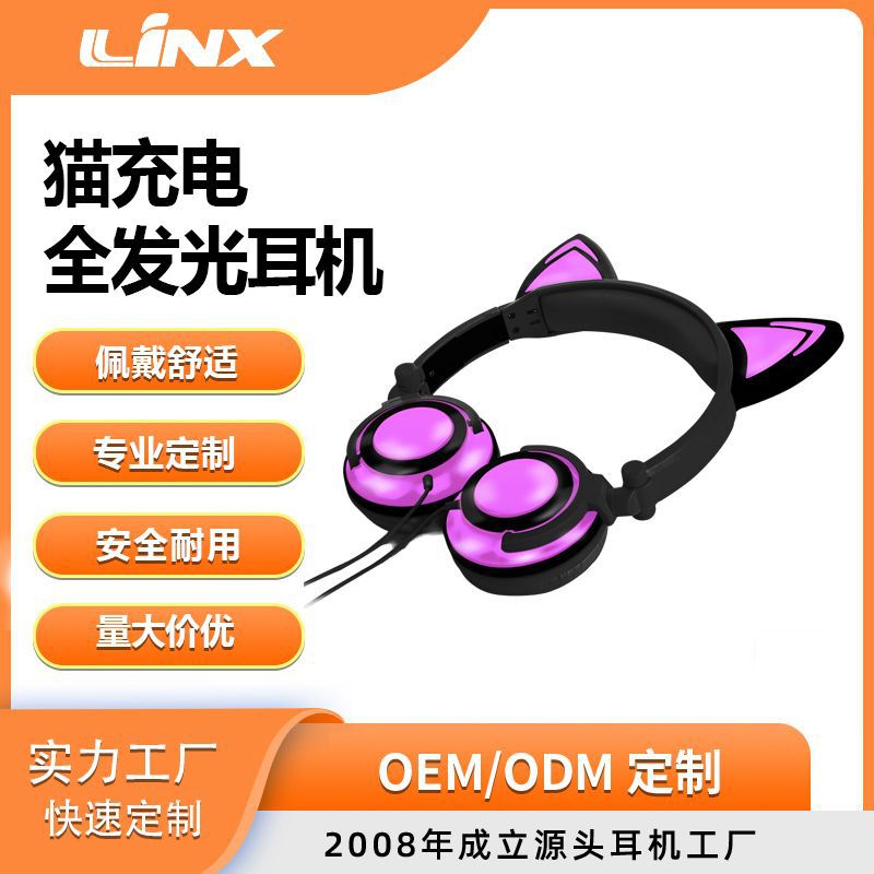 Satu potong pengiriman pengisian daya telinga kucing lucu headset musik bercahaya multiwarna headset stereo opsional grosir