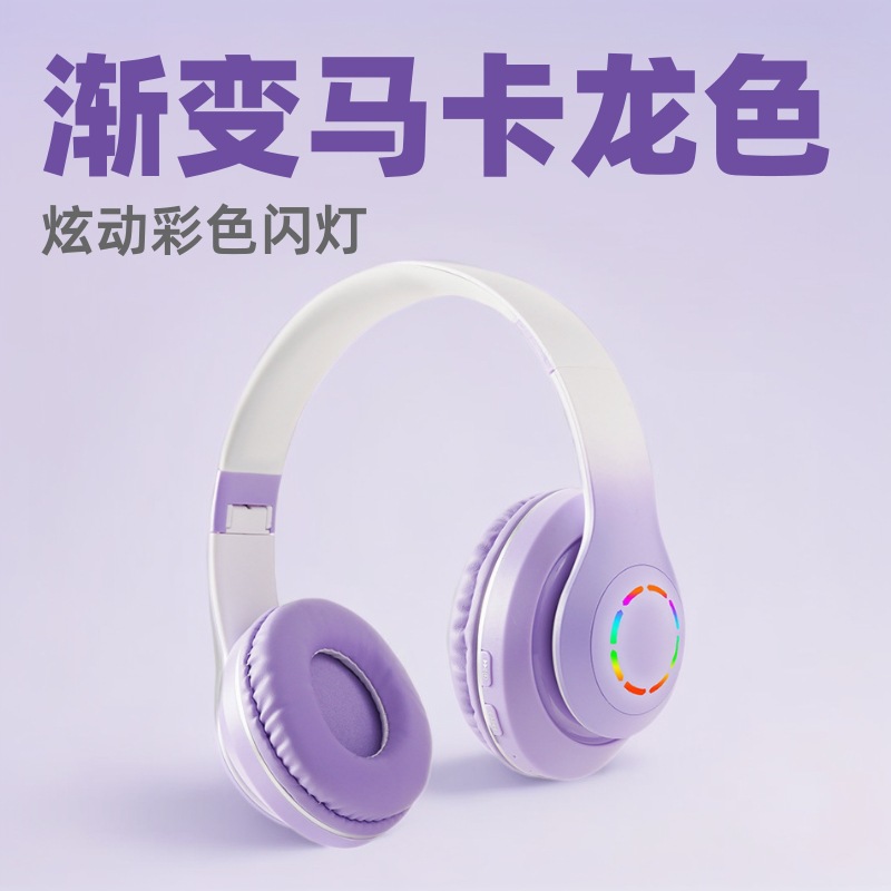 Headset Bluetooth pengurang kebisingan, headset komputer ponsel perempuan dengan mikrofon sangat panjang siaga gradien Macaron