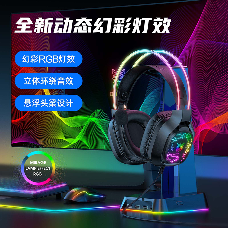Cross-border headset ONIKUMA X22 baru headset game komputer ponsel dengan mikrofon headset RGB bercahaya