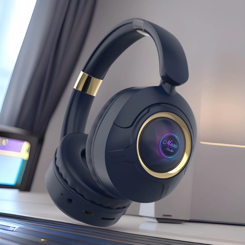 Earphone Bluetooth Nirkabel Tipe Kepala Perdagangan Luar Negeri Penutup Telinga Lembut Lipat Berputar Bercahaya LED Headset Bluetooth