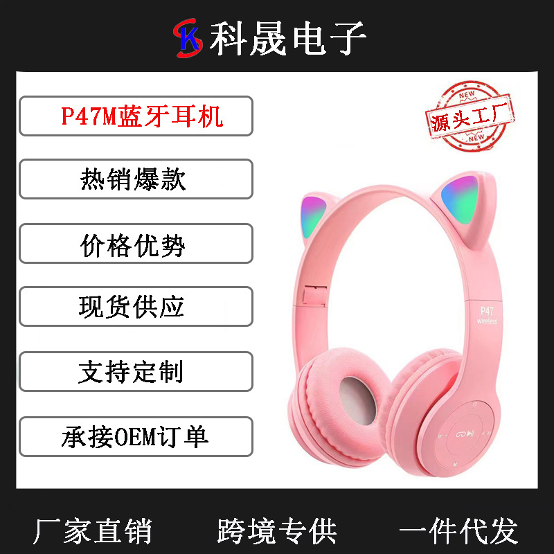 Headset Bluetooth P47M populer lintas batas headset telinga kucing bercahaya kartun kreatif stereo pabrik penjualan langsung