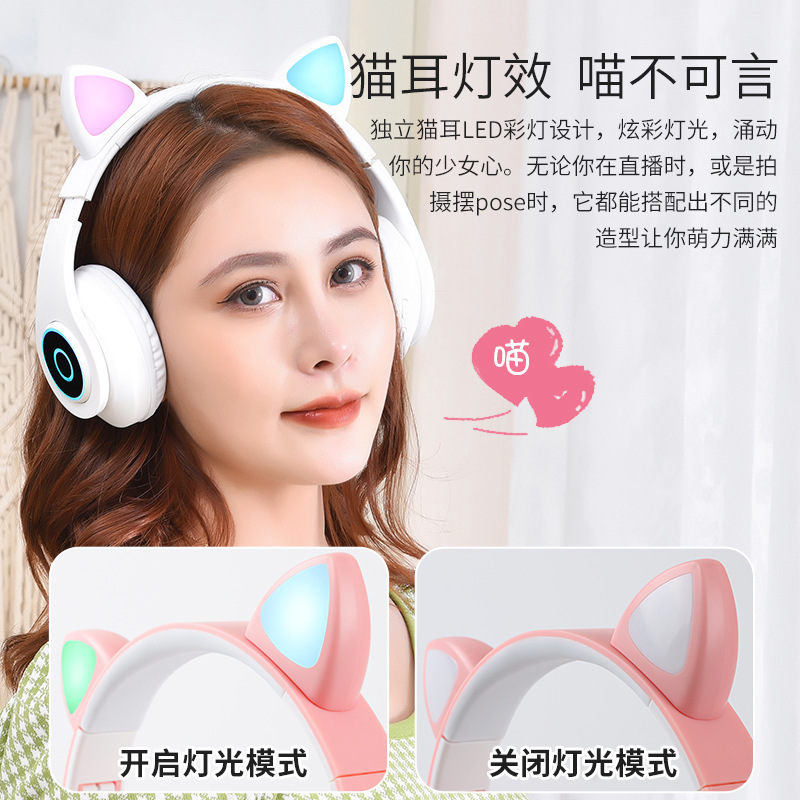 Headphone Bluetooth Bercahaya Siaran Langsung Game Olahraga Nirkabel Lipat Stereo Model Baru B39 Lingkaran Telinga Kucing Model Baru