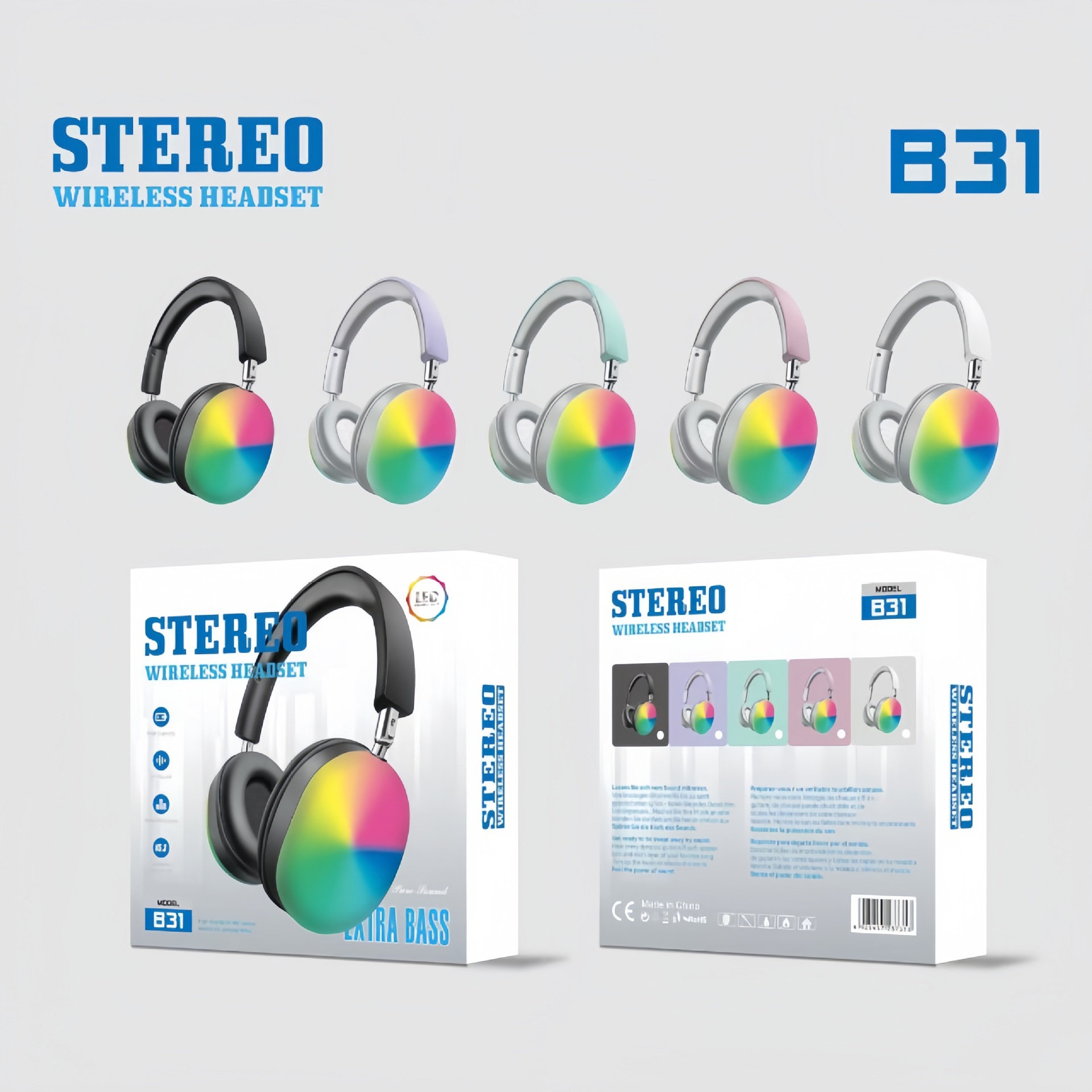 Headset Bluetooth Lintas Batas RGB Lampu LED Bersinar Di Kepala Stereo Gradient Esports Nirkabel Penjualan Langsung Pabrik