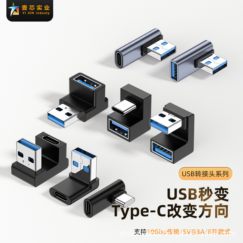 Adaptor ponsel laptop USB male to type-c female, adaptor USB male to tipe-c female, pengisian daya 10Gbps berbentuk U