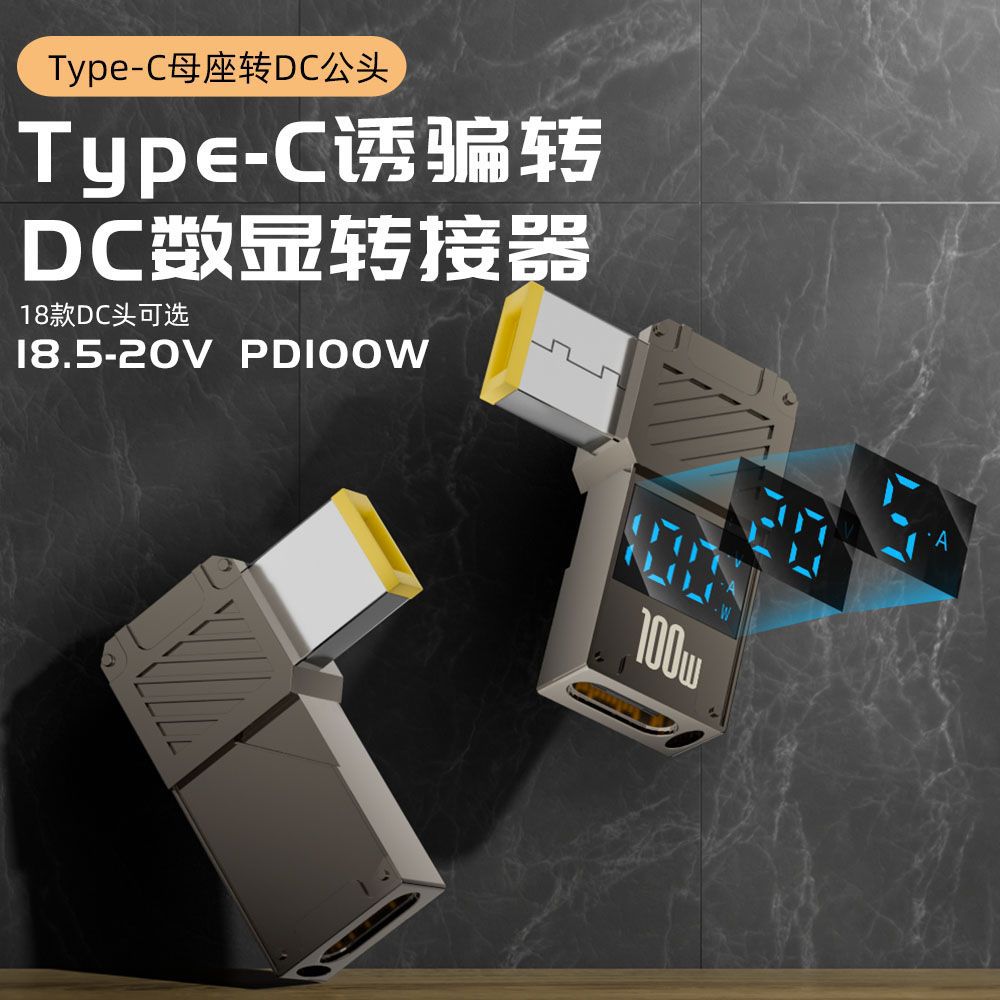Adaptor Digital DC Cocok untuk Isi Ulang Notebook Tipe-C ke DC5525 100W Lenovo Asus HP Dell
