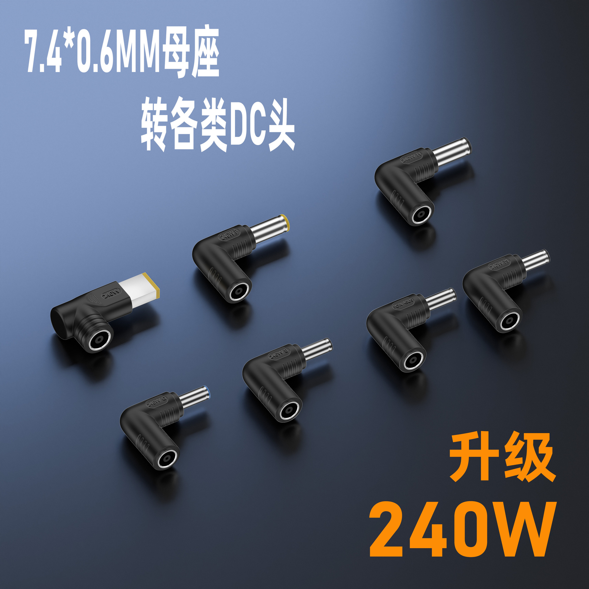 Adaptor daya DC 7.4*0.6mm basis perempuan berlaku untuk catu daya HP Dell ke Lenovo persegi port pengisian daya 240W