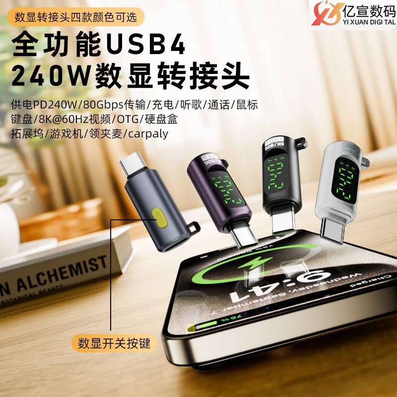 Adaptor daya tarik magnetik type-c baru Adaptor fungsi penuh USB4.0 petir untuk thunderbolt3