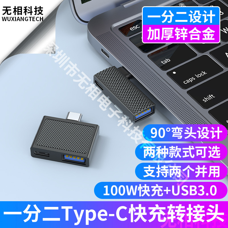 Lintas batas 90 derajat siku tipe-c satu menit dua adaptor PD100W pengisian cepat USB 3.0 ponsel laptop OTG