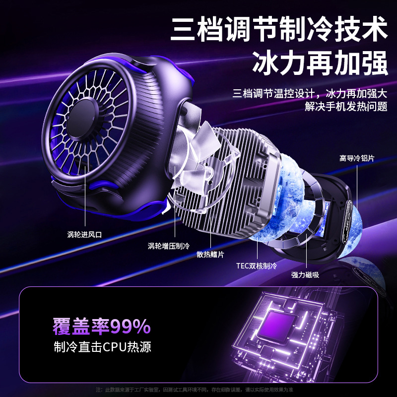 Radiator magnetik ponsel, RGB senyap lampu-off, tampilan suhu pintar, artefak pendingin ayam