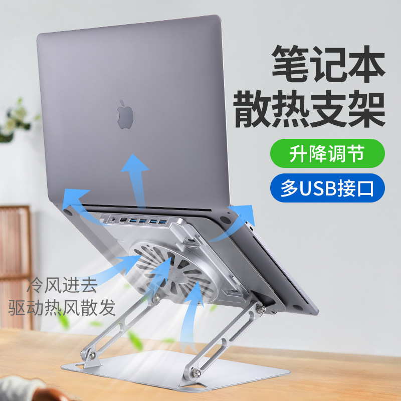 Dudukan tablet komputer notebook, dudukan lipat desktop paduan aluminium dengan kipas dasar penambah tinggi dapat disesuaikan, radiator