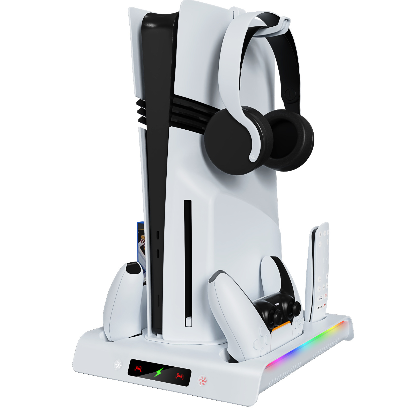 PS5PRO/Slim Unit Utama Dispersi Panas Dasar Pegangan PS5 Pengisian Dua Kursi Headphone Lampu RGB Penyimpanan Disk