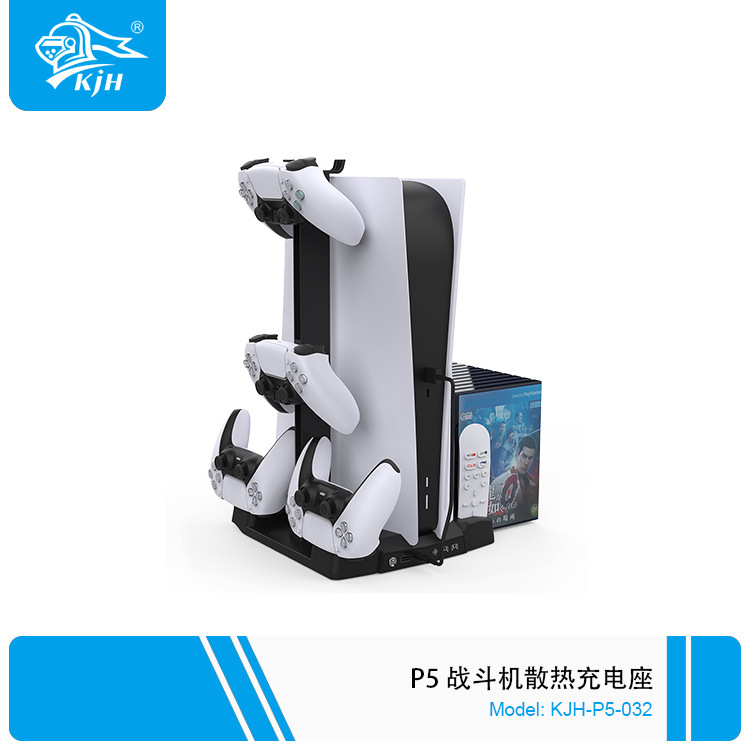 PS5 alas pendingin host fighter dengan rak penyimpanan cakram pegangan PS5 pengisi daya kursi ganda braket penyimpanan headset