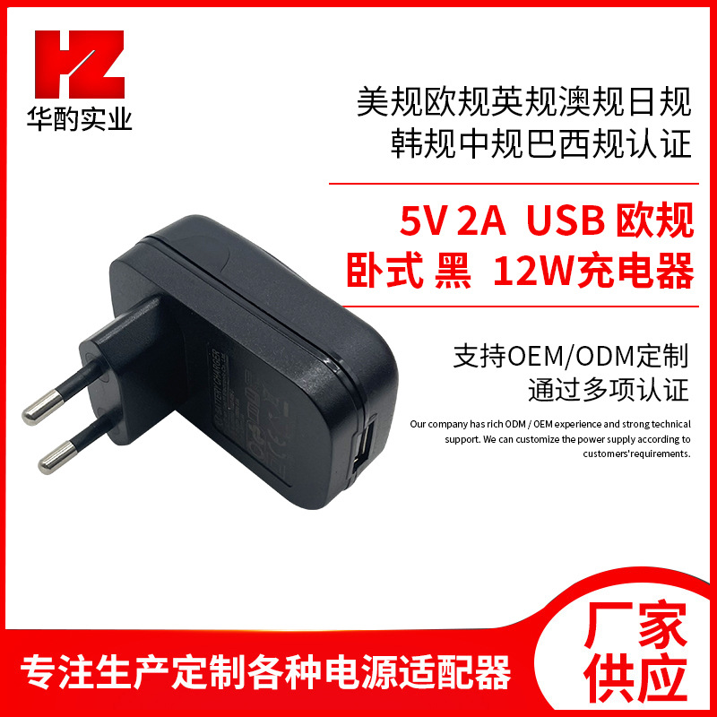 Adaptor daya 5v 2A USB standar Eropa horizontal hitam 12WLED bar lampu pengisi daya laptop produsen