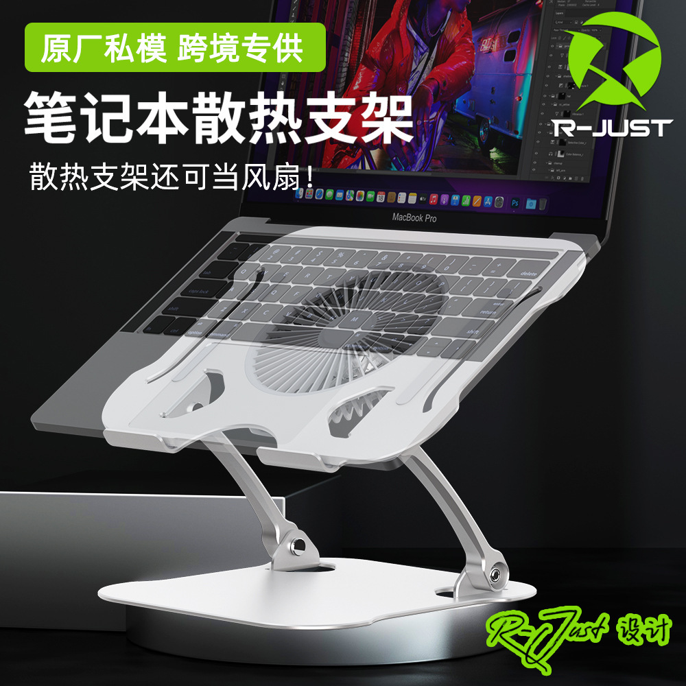 R-JUST kipas desktop lintas batas, braket pendingin komputer aluminium Aloi, braket pendingin notebook lipat