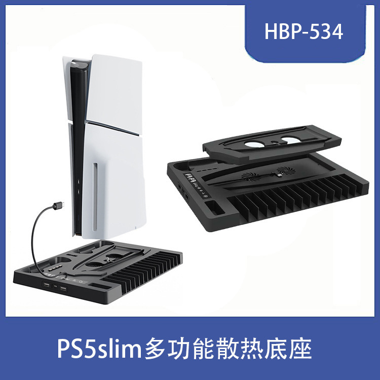 PS5slim multi-fungsi dasar pendingin PS5 dasar pengisian dengan rak penyimpanan cakram menangani pengisi daya kursi headset braket
