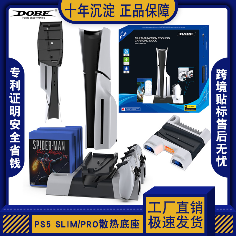 PS5 Slim/Pro Multi Fungsi Basis Pendingin Penyimpanan Disk Ganda Pegangan Cerdas Kualitas Pengisian Cepat