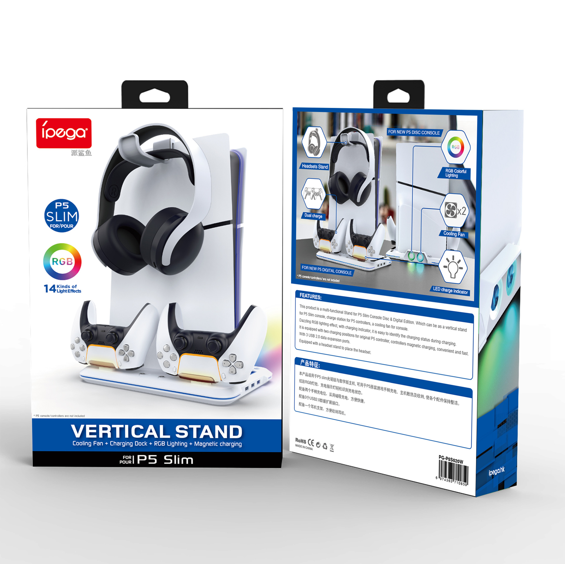 Ipega ps5 rak penyimpan ramping, braket dasar pendingin ps5 ramping p5PG-P5S020W