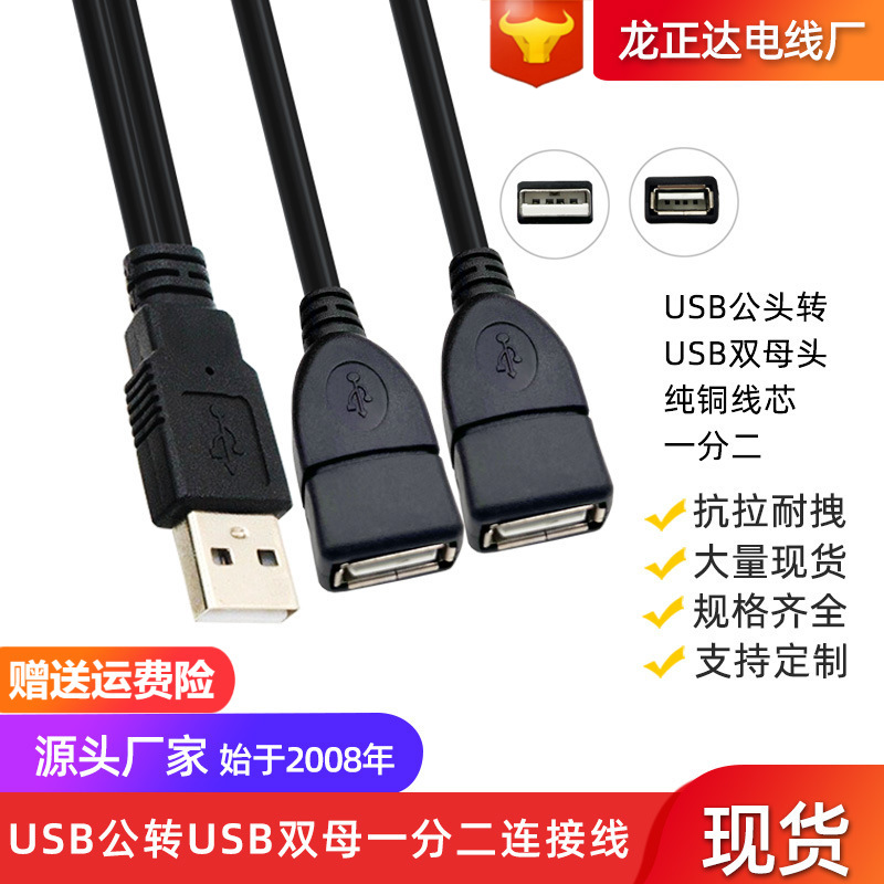Kabel pengisi daya USB pria dan wanita, 0.3 m satu menit dua kabel USB laki-laki dan perempuan tiga kepala Port perempuan satu tarik dua pria