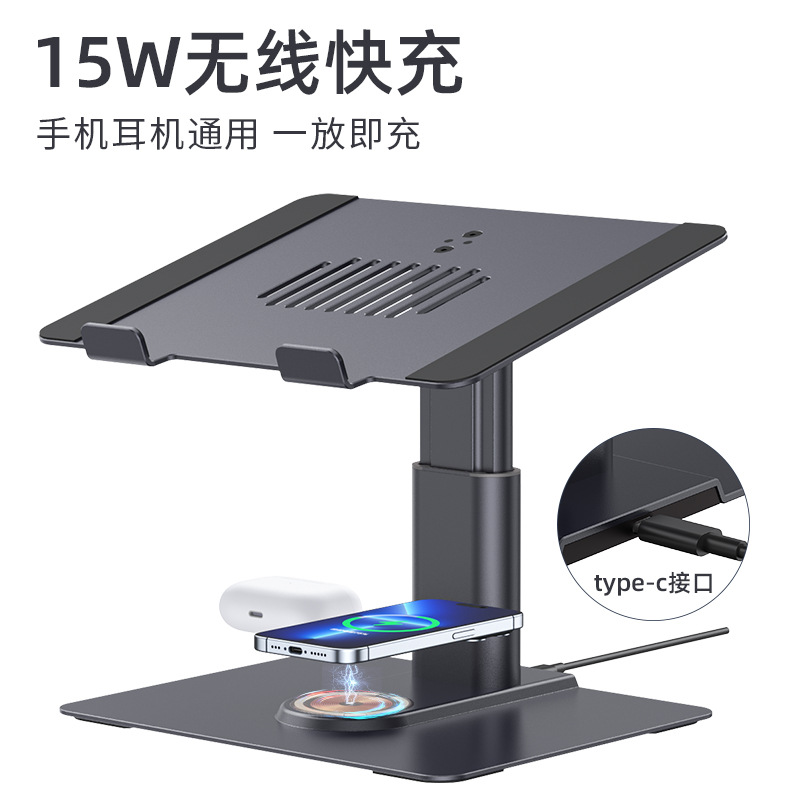 Braket tablet notebook angkat, braket PC aluminium Aloi rak pembuangan panas dengan braket pengisian daya nirkabel