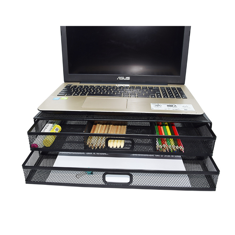 Rak penyimpanan monitor pendingin komputer, braket monitor dudukan komputer, Laci, besi lapisan ganda, rak penyimpanan desktop kantor
