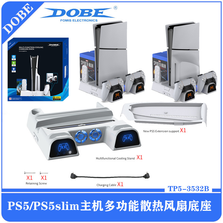 PS5slim host multi-fungsi pengisian dasar pendingin dengan cahaya biru P5 game menangani pengisi daya kursi rak penyimpanan cakram