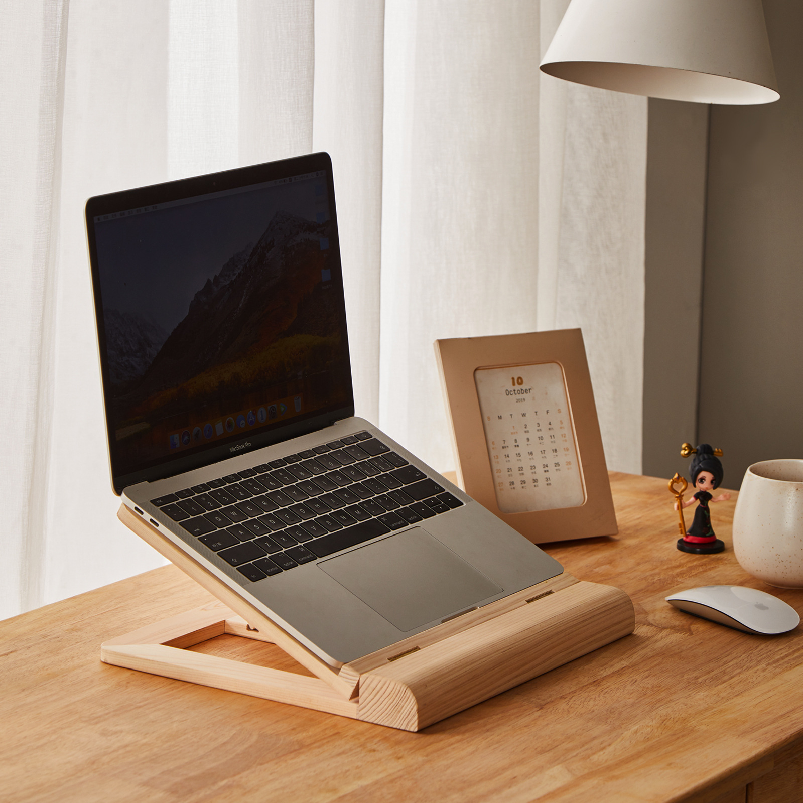 Dudukan laptop kayu Desktop portabel, rak pendingin penambah tinggi, dudukan datar kayu solid