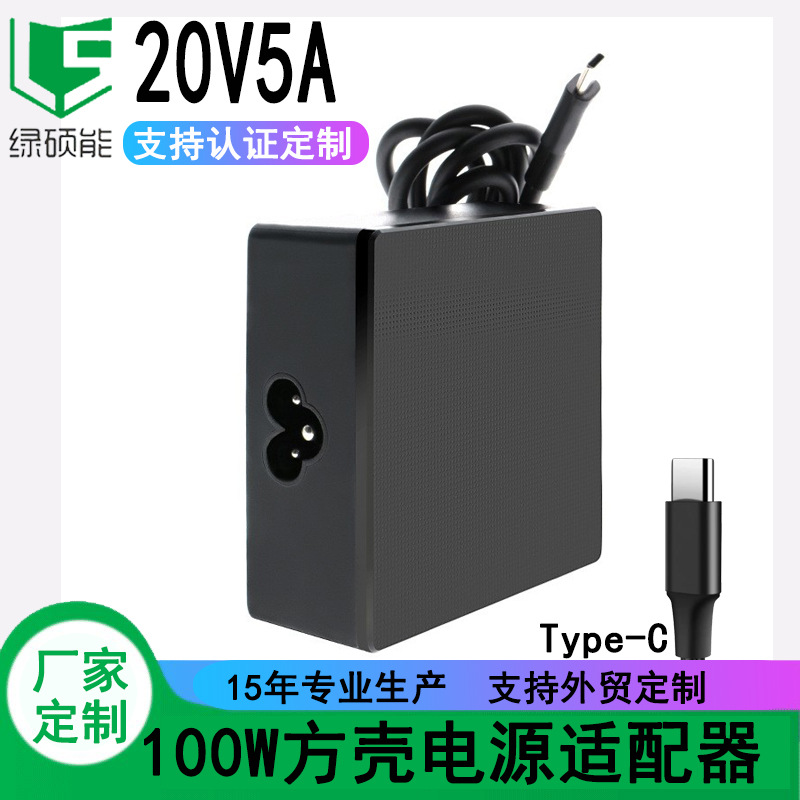 Adaptor laptop 100w 20v5a tipe-c persegi, pengisi daya casing persegi, kepala pengisi daya komputer multi-fungsi