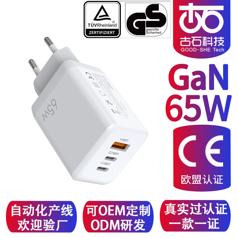 Jerman GS bersertifikat 65W gallium nitrida pengisi daya cepat mengisi kepala PD65W penometer komputer adaptor daya