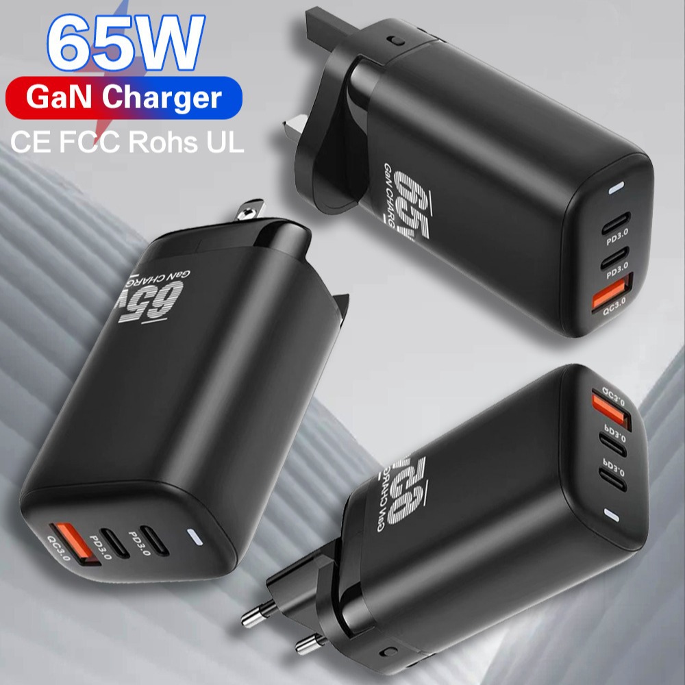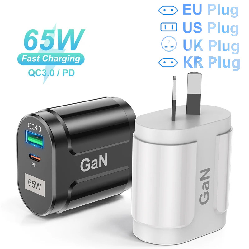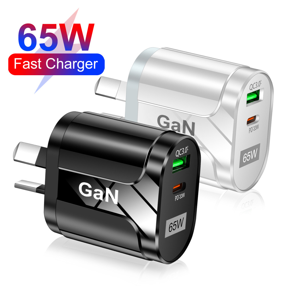 Pengisi daya ponsel QC3.0 65W, standar Australia gallium nitrida Kepala pengisi daya Cepat laptop GaN