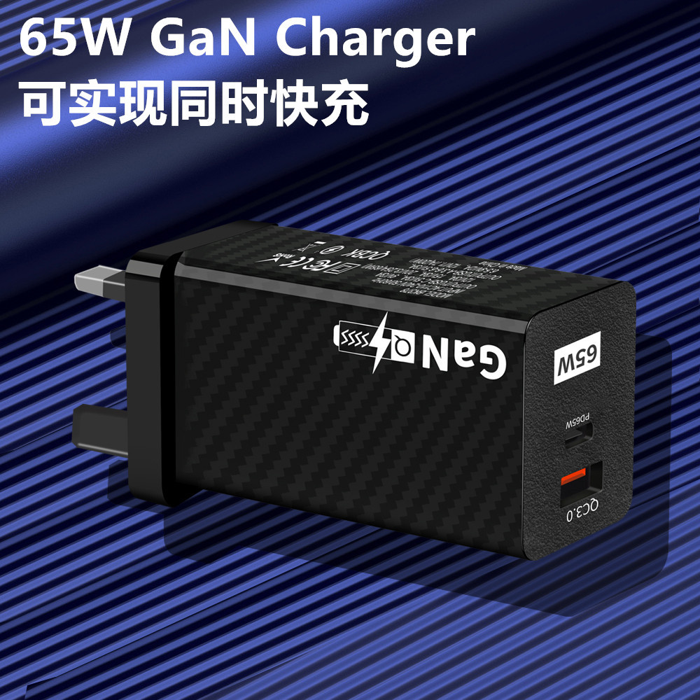 Pengisi daya cepat QC3.0, serat karbon dua garis 65W pengisi daya galium nitrida