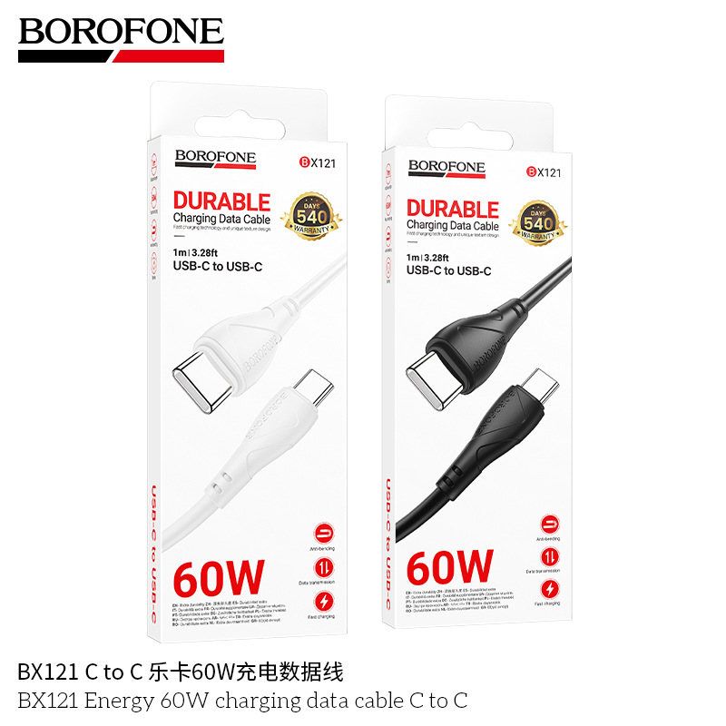 BOROFONE BX121 Ponsel Tipe-C Laptop 60W Kabel Pengisian Kabel Data PD27W Kabel PVC