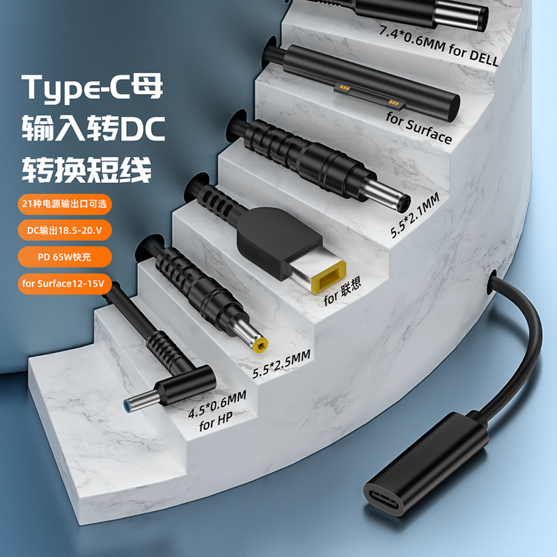Kabel pengisi daya tipe-c betina ke DC 65W cocok untuk Lenovo notebook HP mulut persegi PD kabel adaptor umpan pengisi daya Cepat