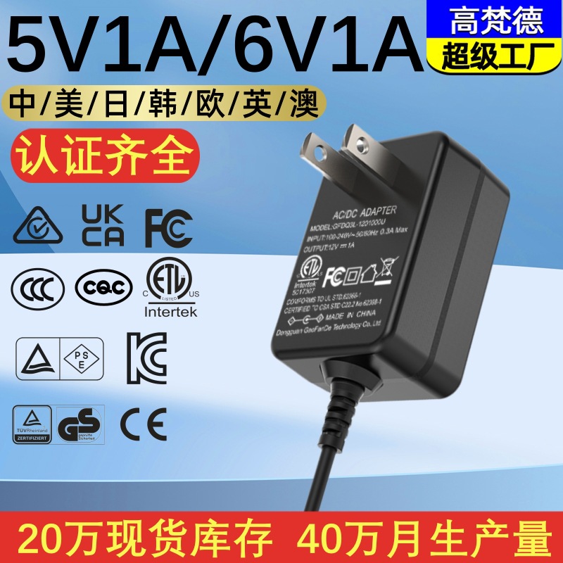 5V1A adaptor daya medium CCC Eropa CE Jepang PSE Amerika ETL standar Inggris UKCA bersertifikat 6V1A adaptor daya