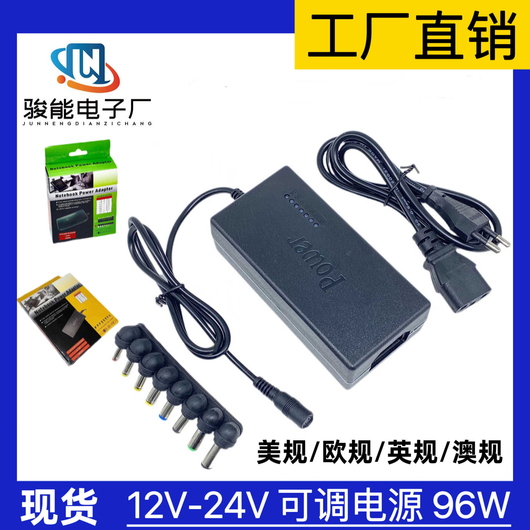 Adaptor daya notebook multifungsi standar US/EU 96W 12-24V dengan motor penggiling tujuh kecepatan yang dapat disesuaikan