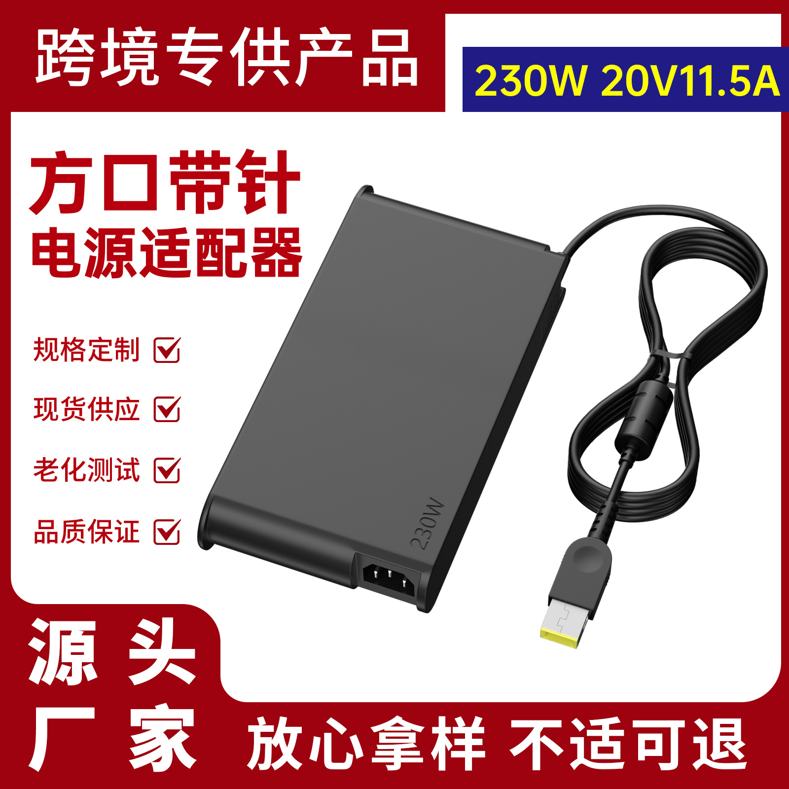 Cocok untuk Lenovo 230W adaptor daya laptop pengangkat baru pengisi daya komputer Port persegi 20V11.5A