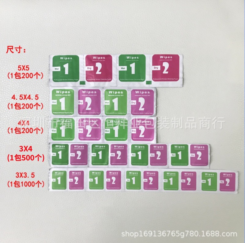 Tas alkohol dalam stok 4*4 tas basah kering ponsel film tempered 3*3.7 1 + 2 Kit alkohol film 5*5 gratis ongkos kirim