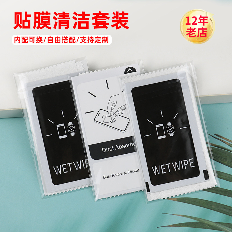 Grosir tas alkohol ponsel film tempered kain pembersih kualitas tinggi kertas kraft film pelindung debu kain pembersih tiga set