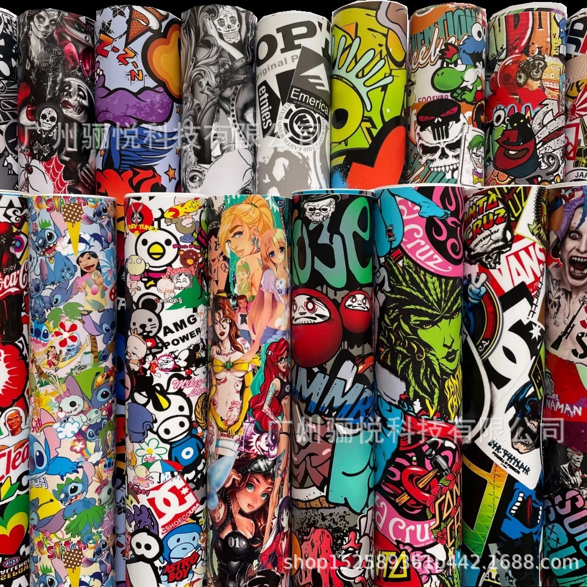 Film vinil grafiti kartun, stiker mobil dengan perekat kartun untuk laptop, lapisan kemasan DIY