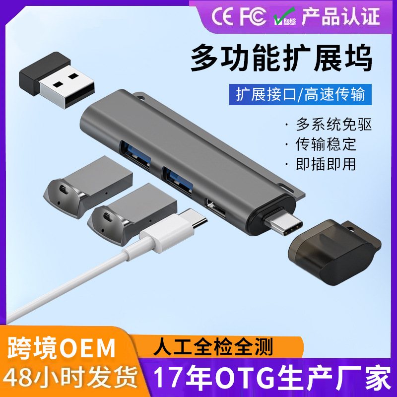 Adaptor laptop, usb splitter antarmuka extender 3.0 adaptor laptop komputer desktop satu ke empat hub stasiun Dok