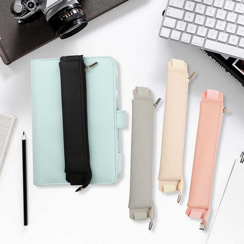 Casing pensil gesper elastis kulit PU tunggal casing penyimpanan pena tali notebook bisnis casing penyimpanan pena sentuh iPad