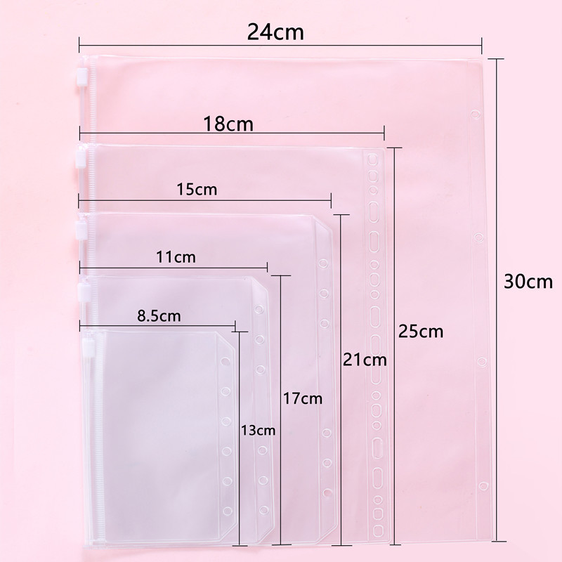 Supply factory pasokan langsung multi-spesifikasi 6 lubang longgar daun notebook tas ritsleting tagihan tangan buku PVC tas penyimpanan