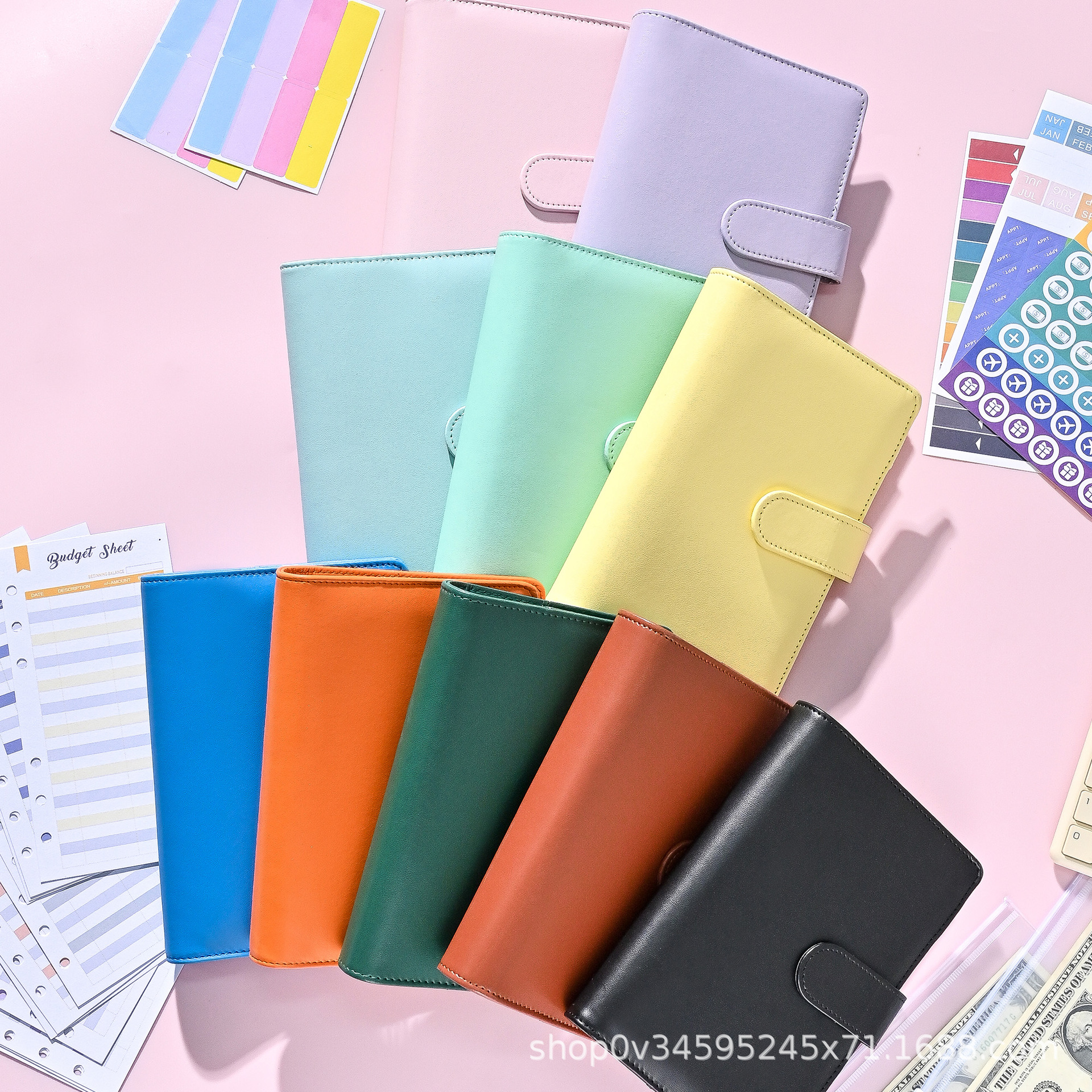 Notebook kulit PU warna murni, lintas batas A6 macaron, notebook, klip longgar, dengan 12 tas ritsleting longgar, tren kreatif